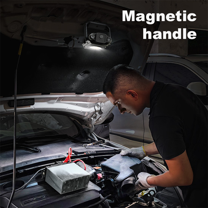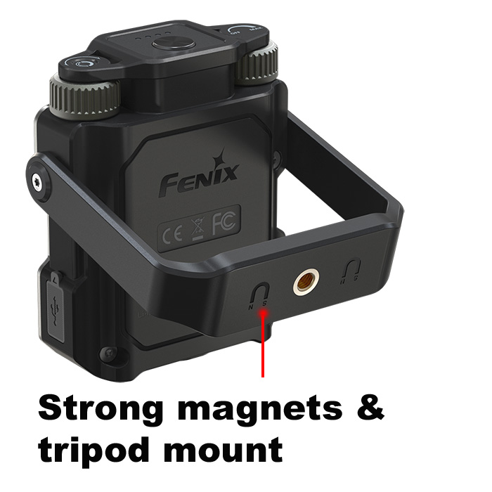 • built-in magnets and tripod socket on swivel handle