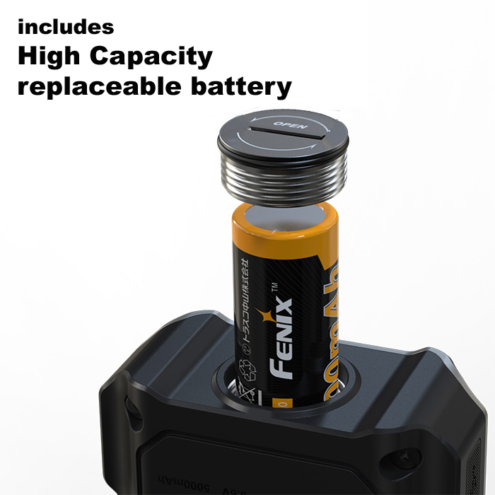 • powered by a Fenix 21700 rechargeable battery, included