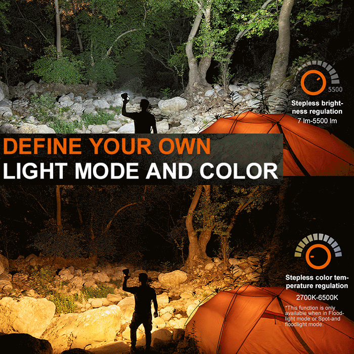 â–¹ white flood + spot mode has fully adjustable brightness and color temperature
