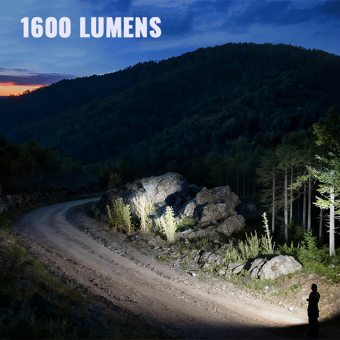 ☼ Turbo – 1600 lumens (6234 candela), 1.3 hours, 160 meters