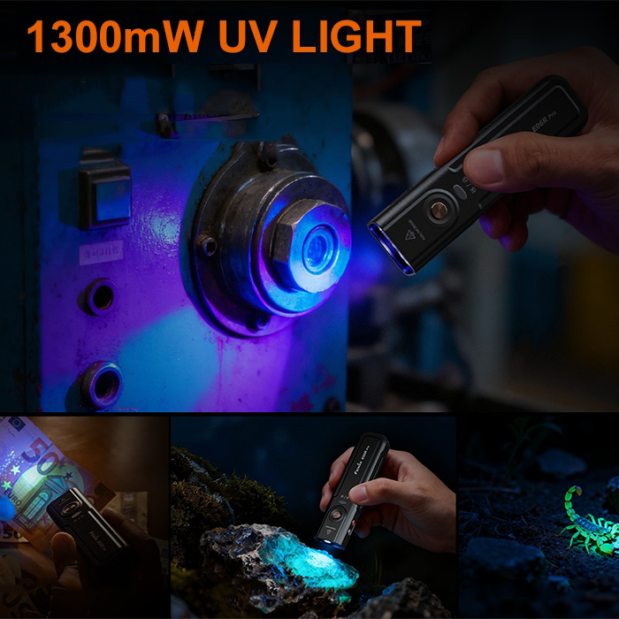 P/N: E06R Pro Black; UPC: 6942870313580; Fenix E06R Pro, white + UV + red laser, 1600 lumens, black