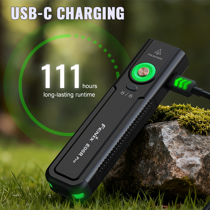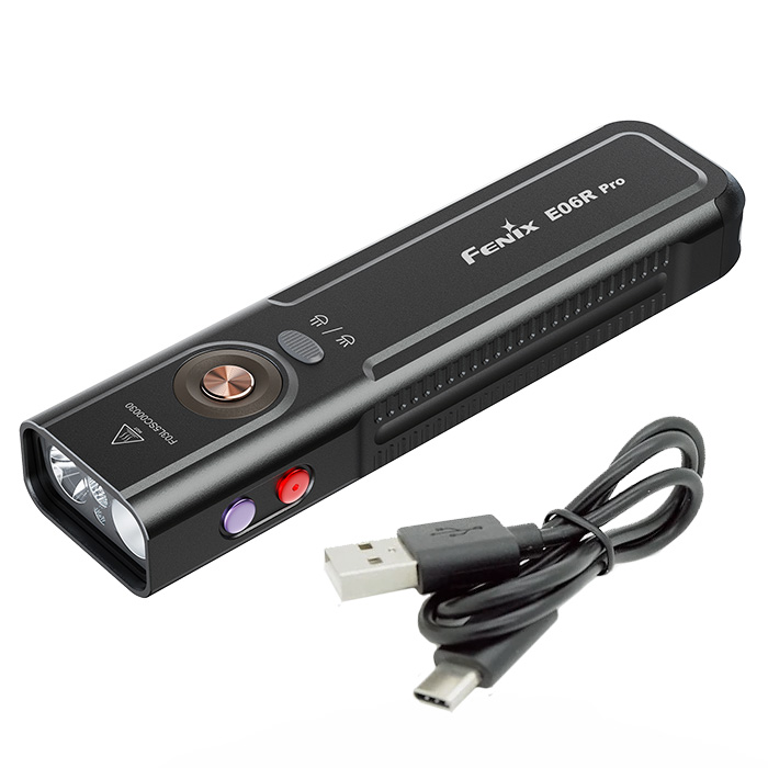 - What’s Included: Fenix E06R Pro, built-in rechargeable battery, rear clip, USB-A to USB-C charging cable, lanyard