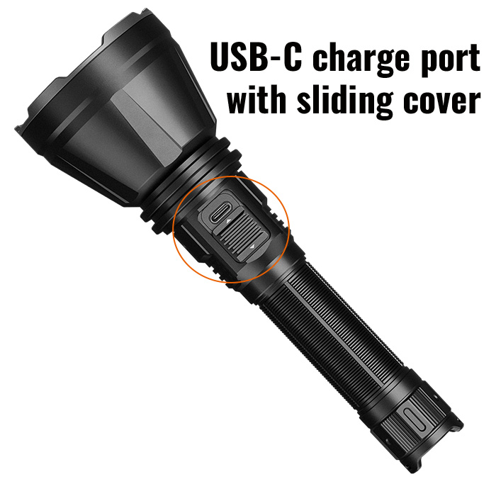 P/N: HT18R V2; UPC: 6942870312620; HT18R V2, USB-C rechargeable, mid-body switching, 3700 lumens