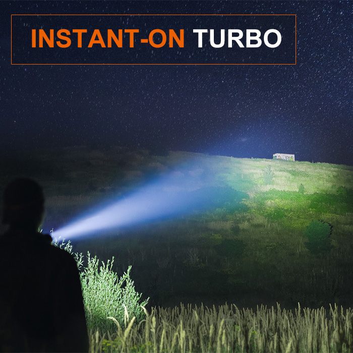☼ Turbo – 3700 lumens (268,000 candela), 2 hours, 1100 meters