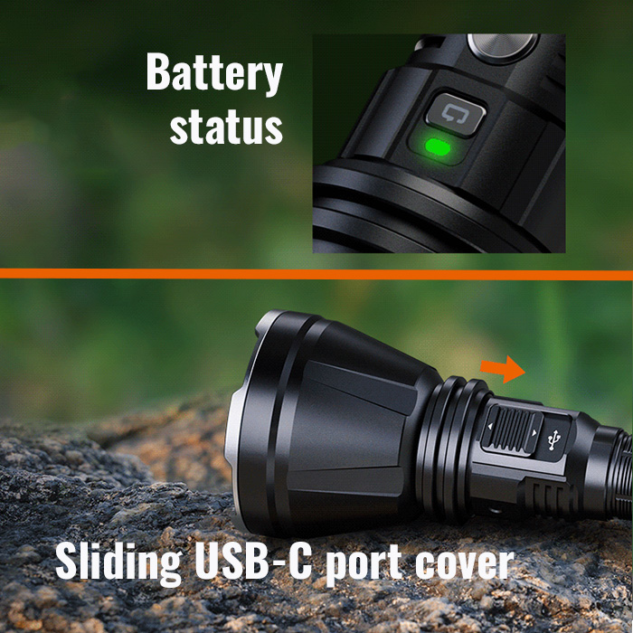 â–¹ attach included cable to USB-C port on flashlight for charging