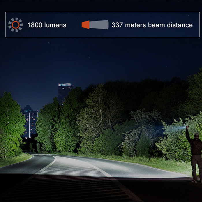 ☼ Turbo- 1800 lumens (28,400 candela), 2.3 hours, 337 meters