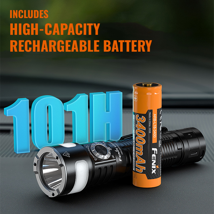 - Battery Type: Fenix ARB-L18-3400 18650 rechargeable (1), included
