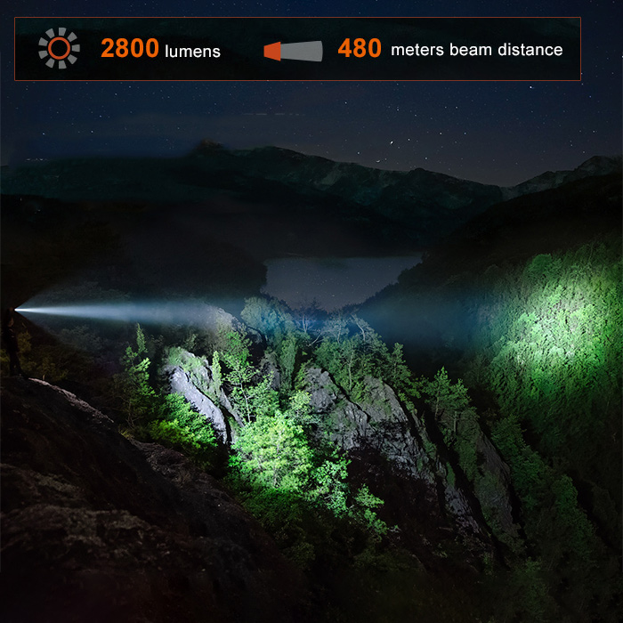 ☼ Turbo – 2800 lumens, 2.6 hours, 480 meters spot, 164 meters flood