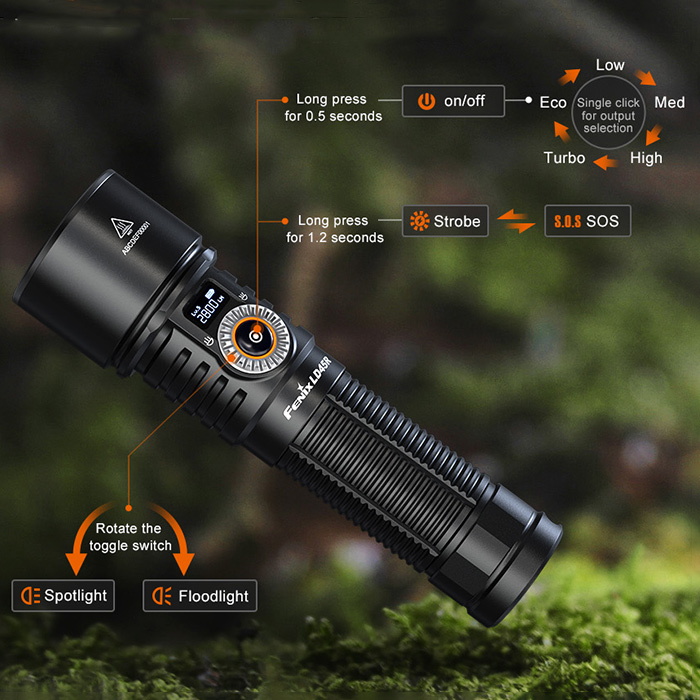 Features of Fenix LR45R Rechargeable Flashlight with Digital Adjustable Focus:
