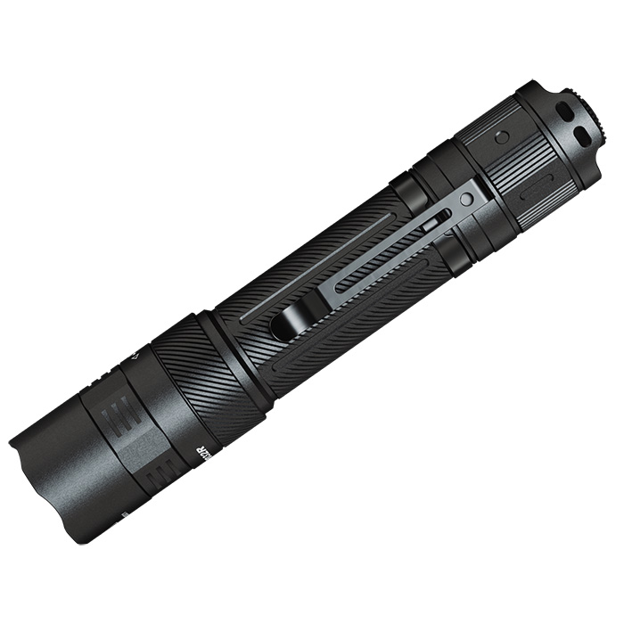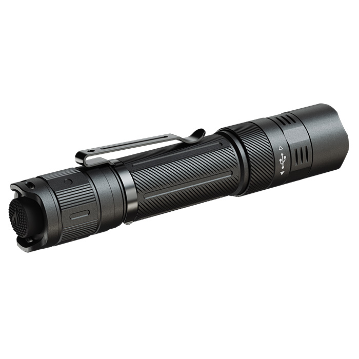 Fenix PD32R flashlight has an electronic tail switch and a hidden USB-C charge port. Simply unscrew the aluminum sleeve below the bezel to reveal the charge port This compact flashlight also has a battery status/charging status indicator on the opposite side of the charging port. Light press the tail switch for momentary on or fully press for constant on. From on, light press the switch again to change the brightness level. The PD32R always turns on in the brightness level that was last used when the light was switched off. The Fenix PD32R comes complete with a high-capacity rechargeable battery, pocket clip and nylon belt holster……$79.95
