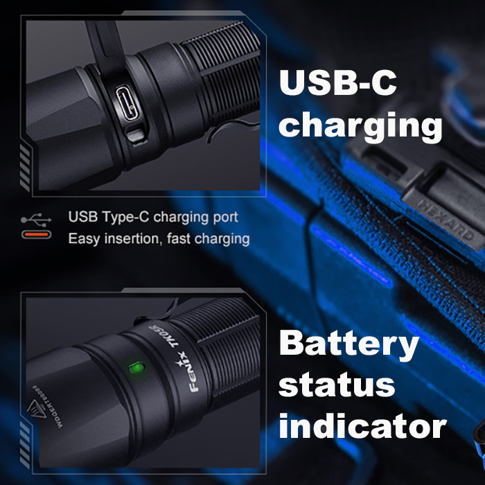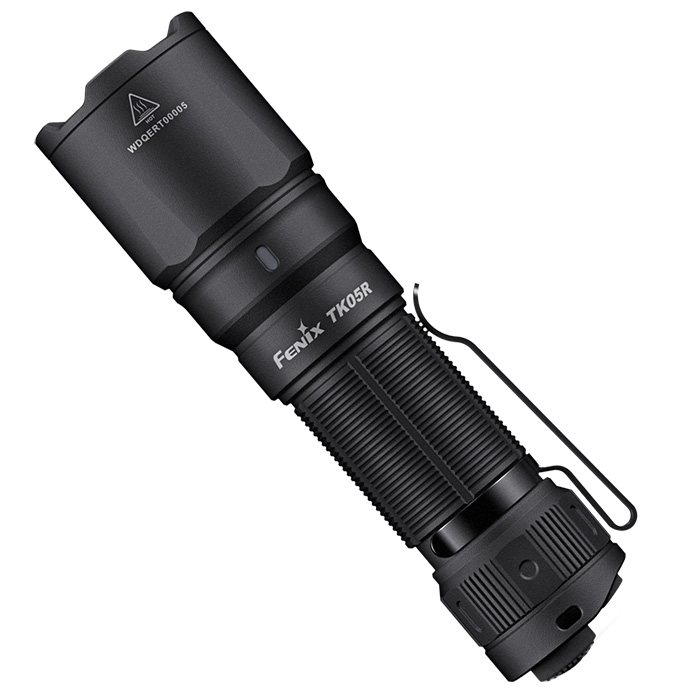 - What’s Included: Fenix TK05R flashlight, pocket clip, rechargeable battery, USB-C to USB-A cable, nylon belt holster, wrist lanyard, spare O-ring