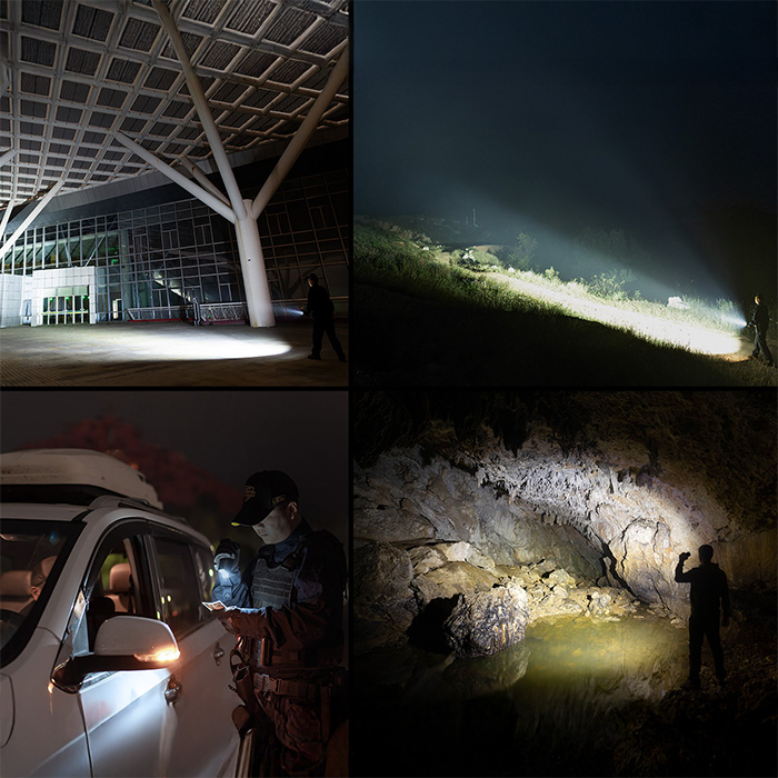 • brightness, runtime and beam range specs
