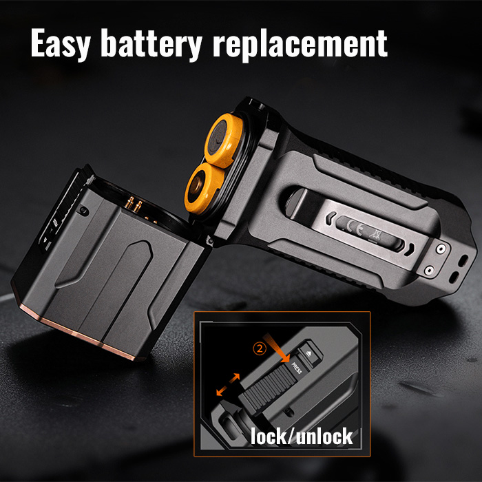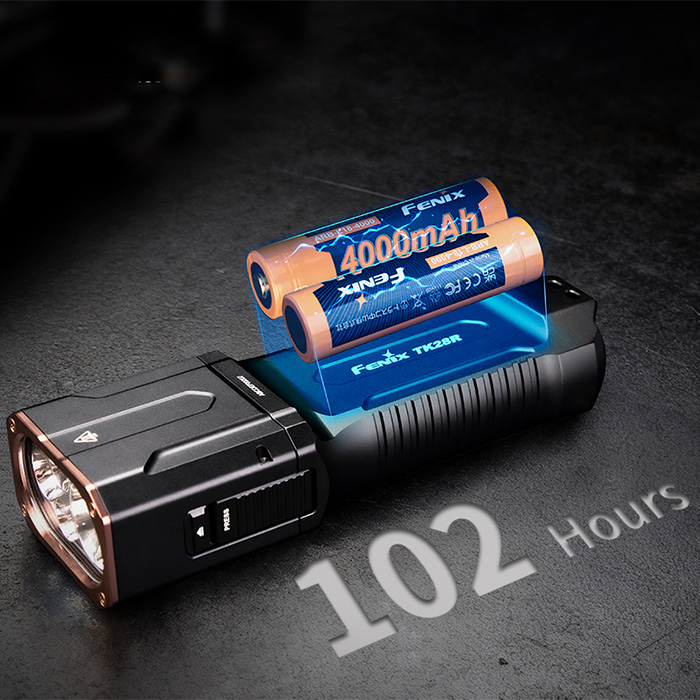 • powered by two Fenix 18650 ARB-L18-4000 rechargeable batteries