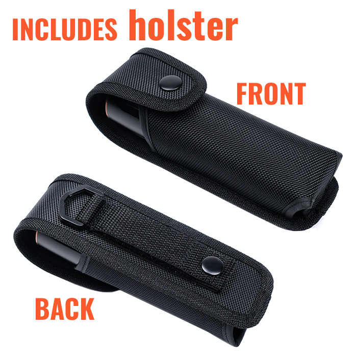 - What’s Included: Fenix TK35R flashlight, two rechargeable batteries, nylon belt holster, pocket clip, wrist lanyard, spare O-ring and USB-C to USB-A cable