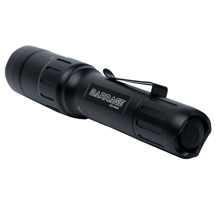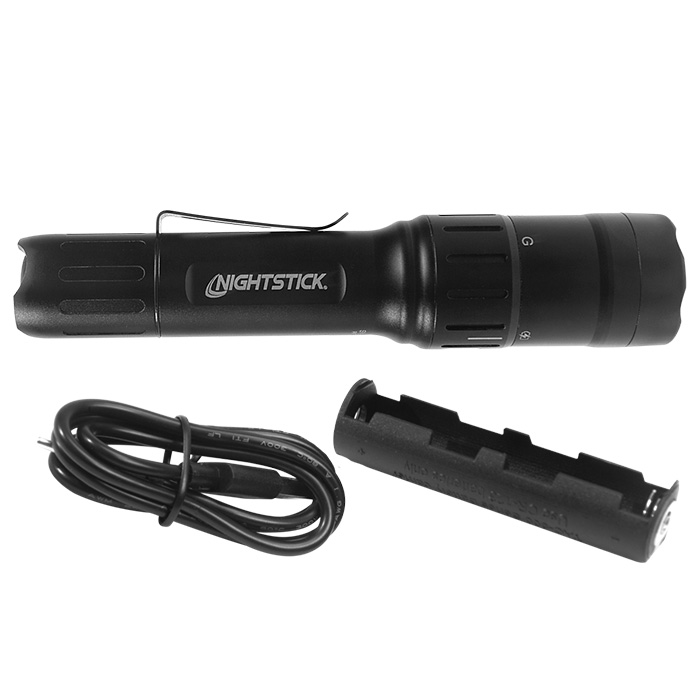 - What’s Included: Nightstick Barrage flashlight, rechargeable battery, pocket clip, USB-C to USB-A cable, CR123 battery carrier