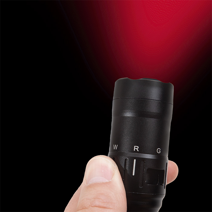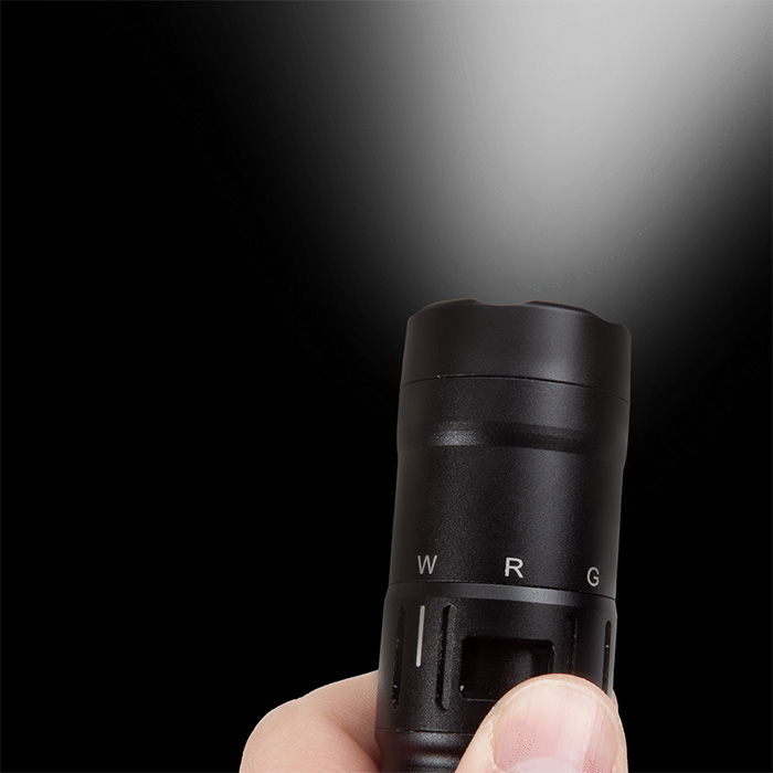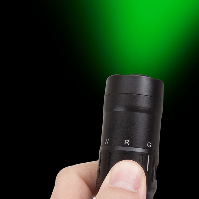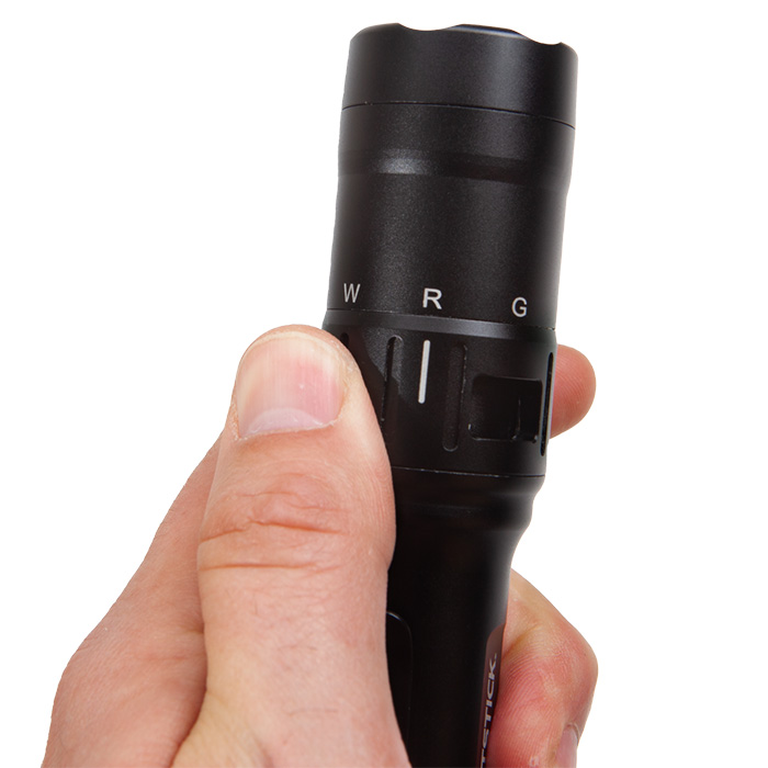 Nightstick Barrage is a rechargeable flashlight with white spot, red flood and green flood output modes. Twist the selector ring to select output color, then use the tail switch for on or off. The Barrage has an integrated USB-C charging port that can be accessed by twisting the selector ring below the bezel. In addition to the included rechargeable battery, this Nightstick flashlight can be powered by two CR123A non-rechargeable batteries using the included CR123 battery tray……$149.95