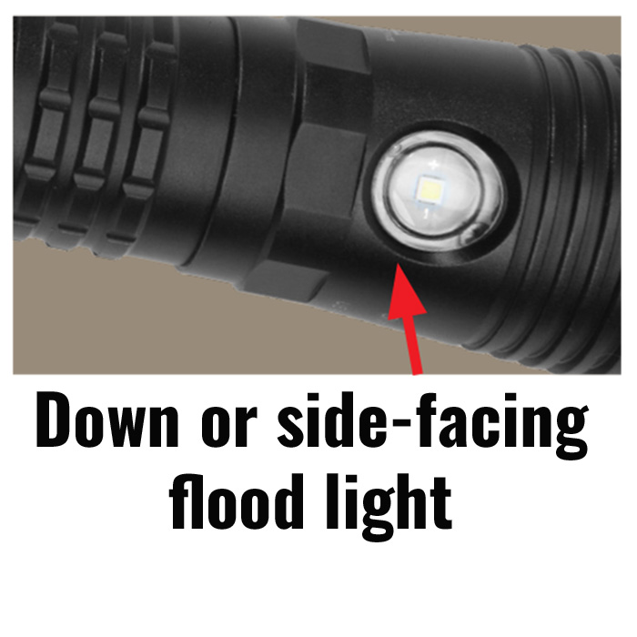 â–¹ press side switch to activate down or side facing flood