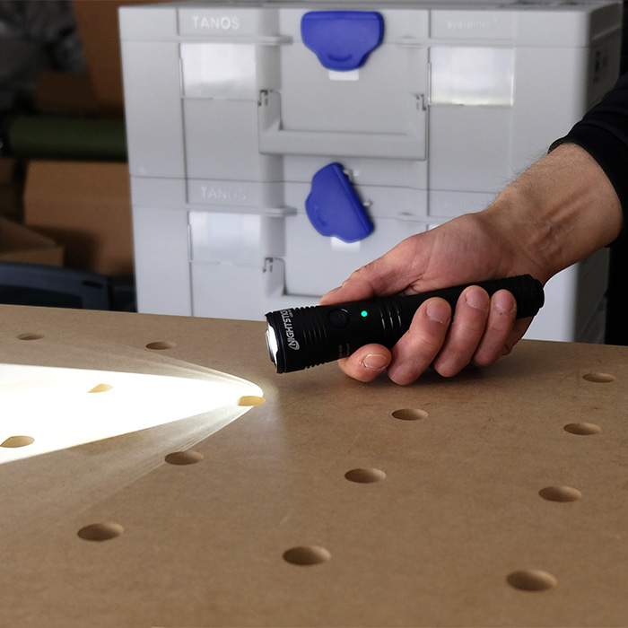 • brightness, runtime and beam range specs