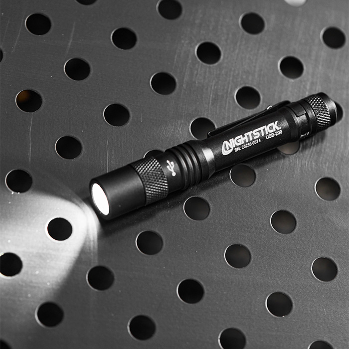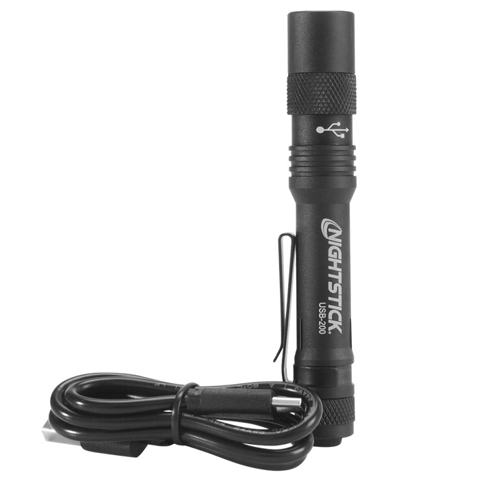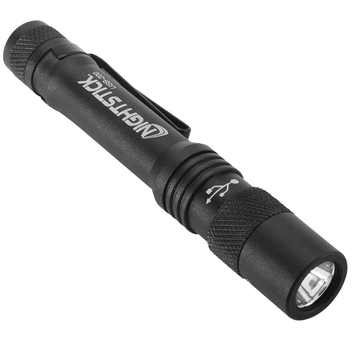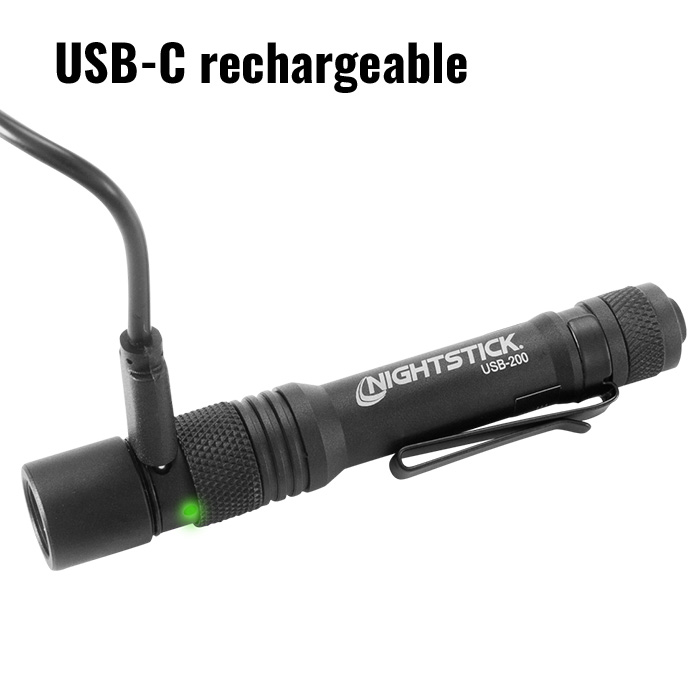 - What’s Included: Nightstick USB-200 flashlight, rechargeable battery, pocket clip, USB-C to USB-A charging cable