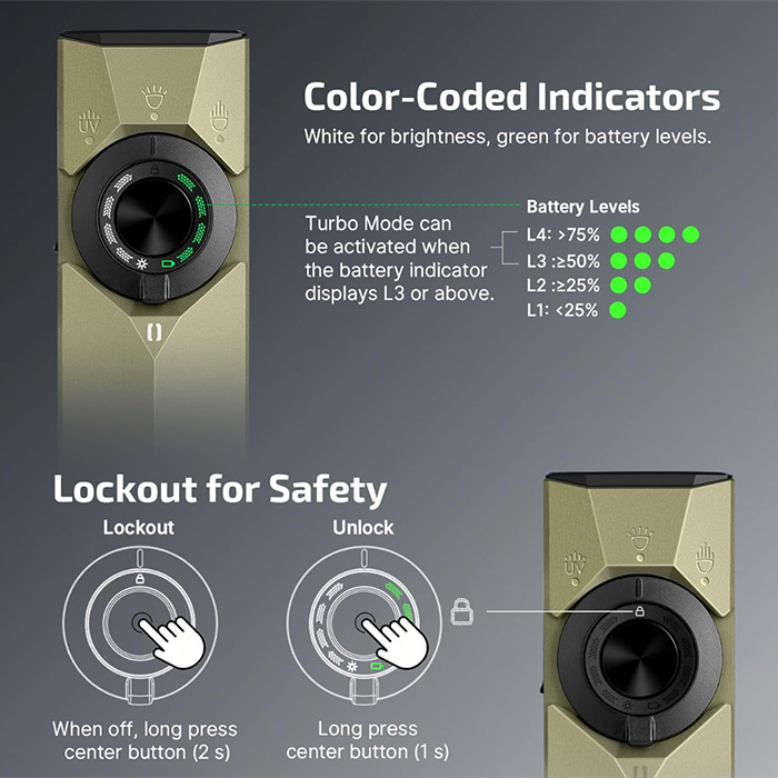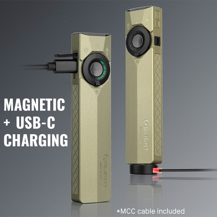 Olight ArkPro Ultra is the ultimate EDC pocket light. This light has white, ultraviolet and green laser output modes. The green laser can be used in combination with either white light or UV light. Rotate the dial to select output mode, then press for on. ArkPro Ultra also has charging options – charge magnetically using the included cable or charge using the integrated USB-C port (USB-C cable sold separately). …..$119.98