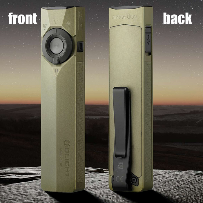 - What’s Included: Olight ArkPro Ultra flashlight with pocket clip, built-in rechargeable battery, magnetic charging cable