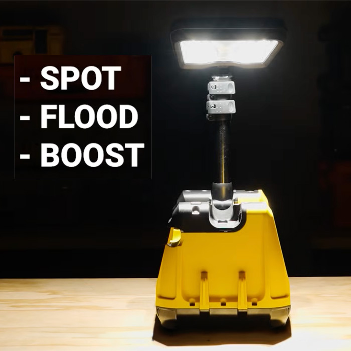 • 3 preset brightness levels with spot and flood modes