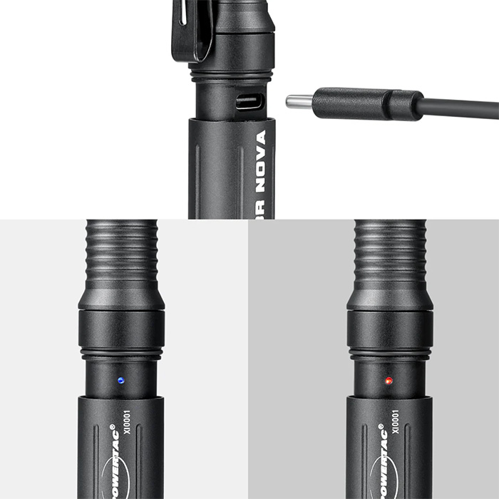 - What’s Included: Powertac E3R Nova, built-in battery, USB-C to USB-A charge cord