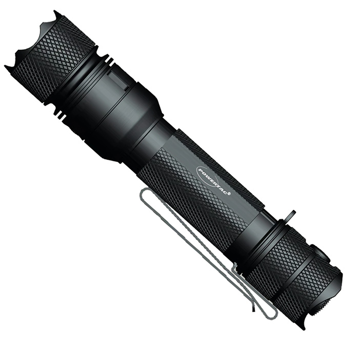 • powered by a Powertac 18650 lithium-ion rechargeable battery