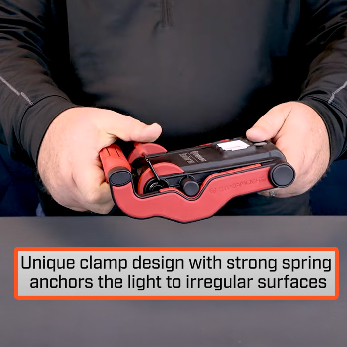 • clamps to virtually any flat, round or irregular surface