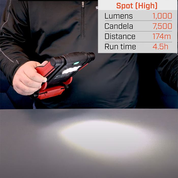 ☼ High spot – 1000 lumens, 4.5 hours, 174m