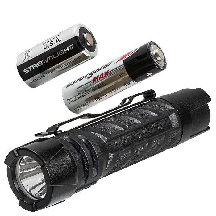 P/N: 86000; UPC: 080926860001; PolyTac 1X, CR123A & AA battery, Black
