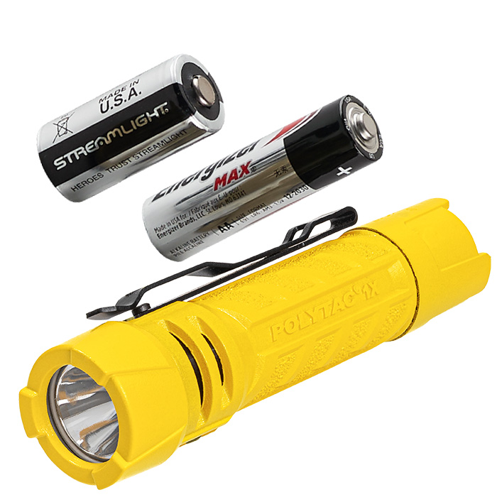 P/N: 86002; UPC: 080926860025; PolyTac 1X, CR123A & AA battery, Yellow