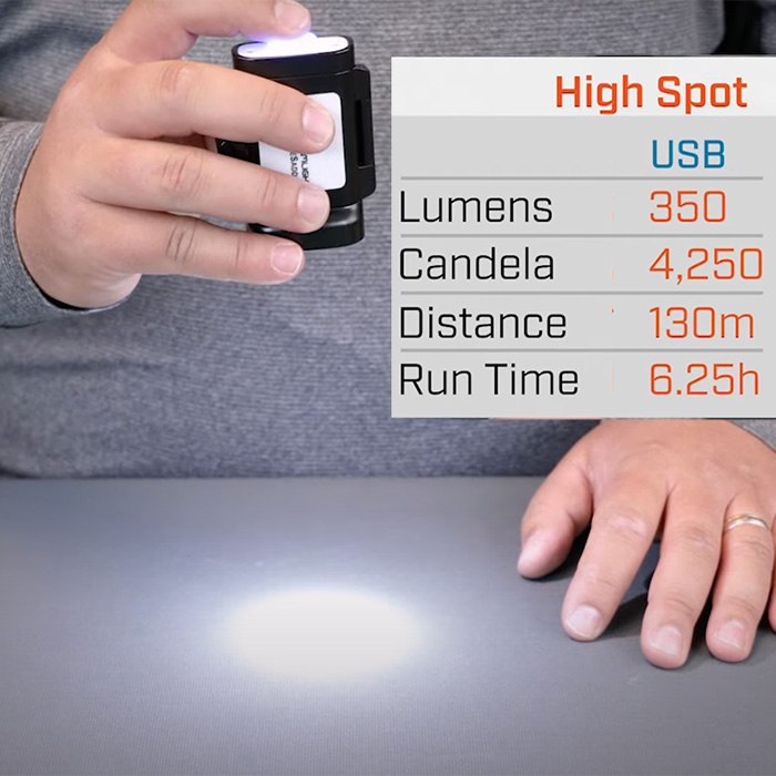 ☼ spot high – 350 lumens, 6.25 hours, 130m