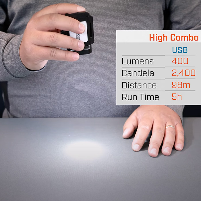 ☼ combo high – 400 lumens, 5 hours, 98m