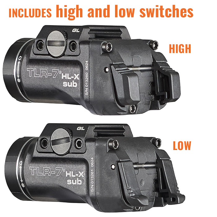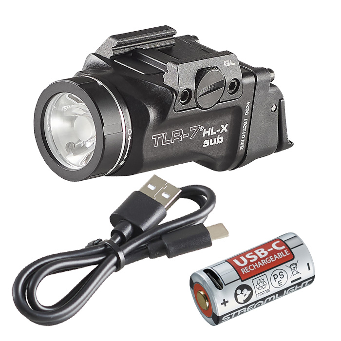 - What’s Included: Streamlight 69503 TLR-7 HL-X SUB USB light, high and low switches, mounting kit with key, multi-tool, SL-B9 rechargeable battery, USB-C to USB-A cable